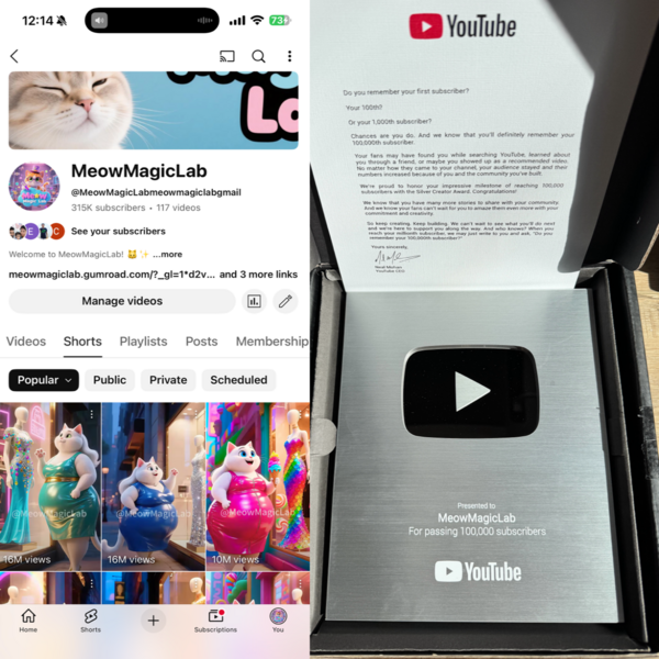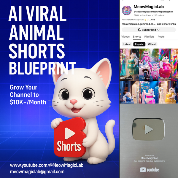 I run a YouTube channel (youtube.com/@MeowMagicLabmeowmagiclabgmail) with 363,000+ subscribers, where I create viral AI-powered shorts and storytelling content. πΎπ₯